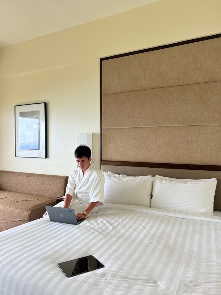 Our hotel experience won't be complete without trying Taal Vista Hotel's robes for a photo op. (Swipe below photo for more pictures)